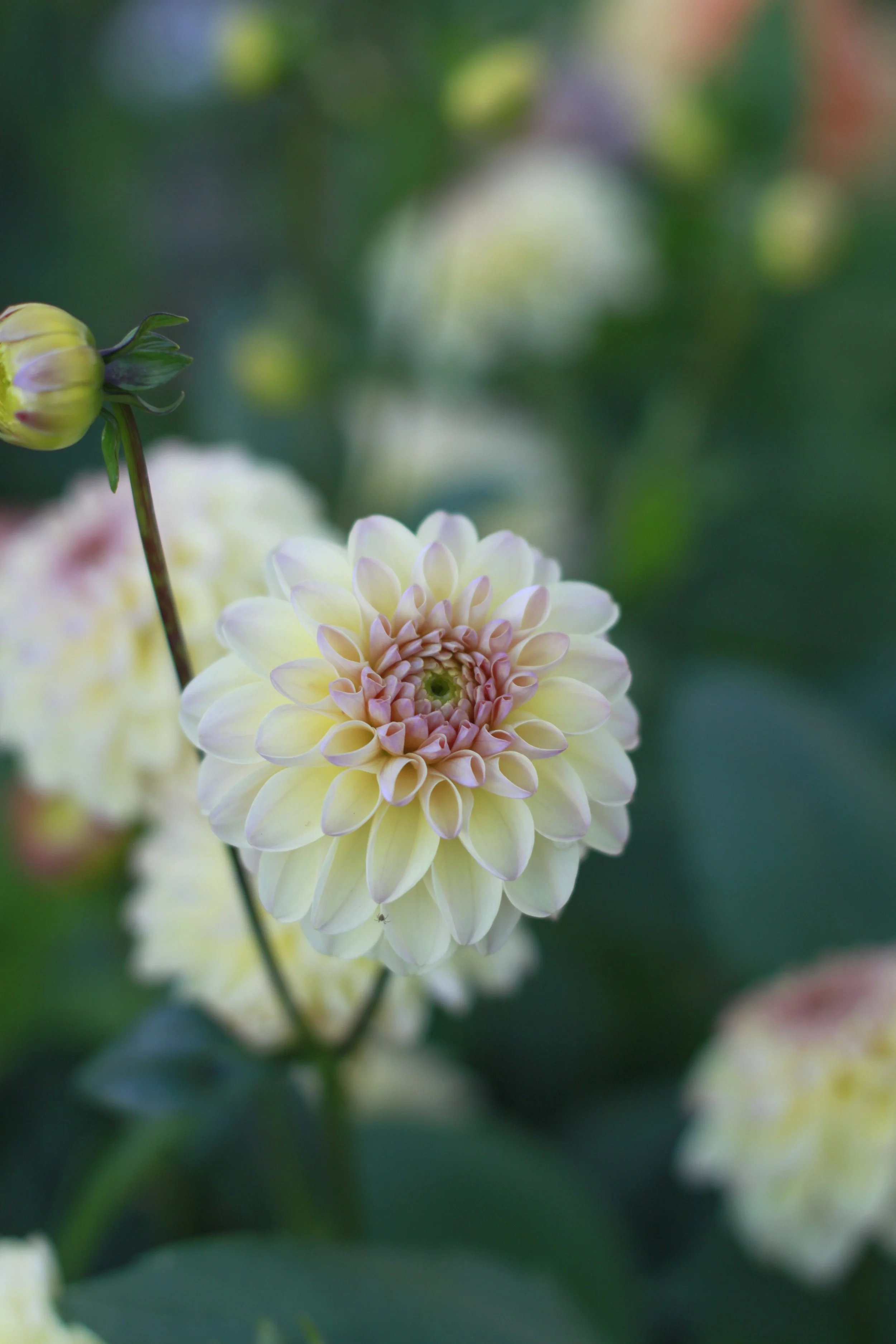 Honeycomb is a mini decorative dahlia in yellow with hints of pink at the centre.